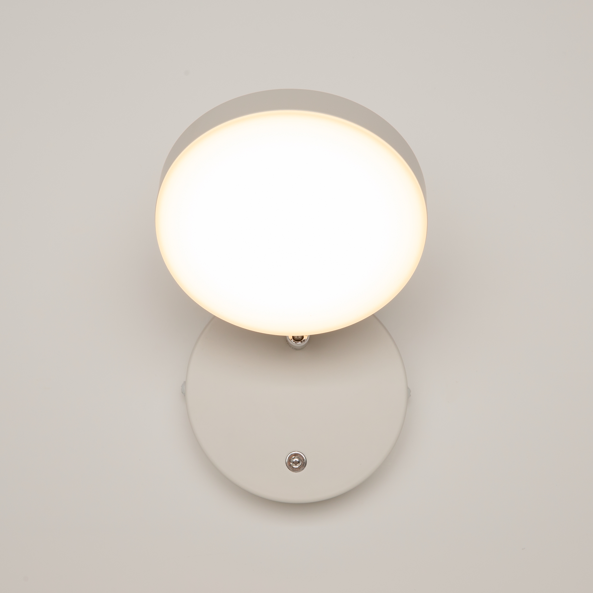 Плафоны и арматура из металла. Цвет рассеивателя — белый, арматура черная или белая. Конструкция предусматривает шарнирный механизм, позволяющий регулировать направление света и высоту светильников. Плафоны вращаются на 90 и 360° (в вертикальной и горизонтальной плоскостях). Угол рассеивания — 120 градусов. Тип света — рассеянный.