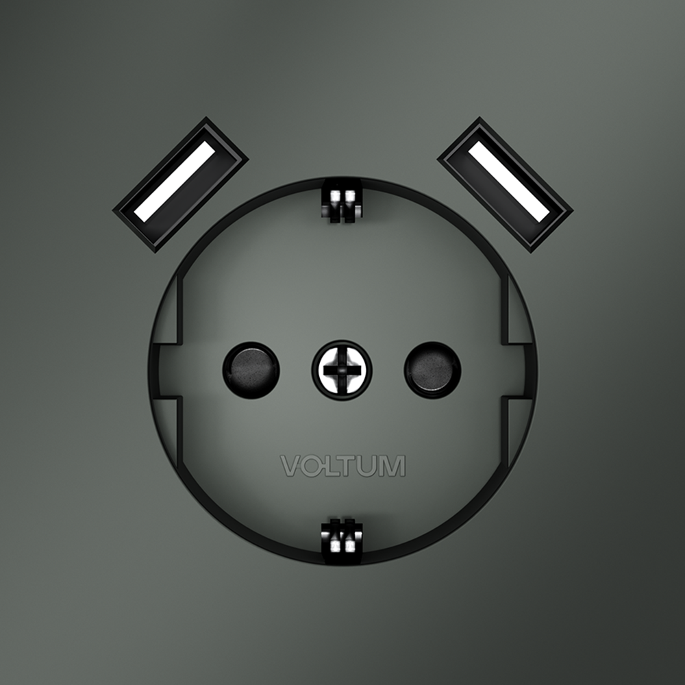 Розетка встраиваемая VOLTUM S70 с заземлением и защитными шторками, 16А, с USB, A+A, (титан)