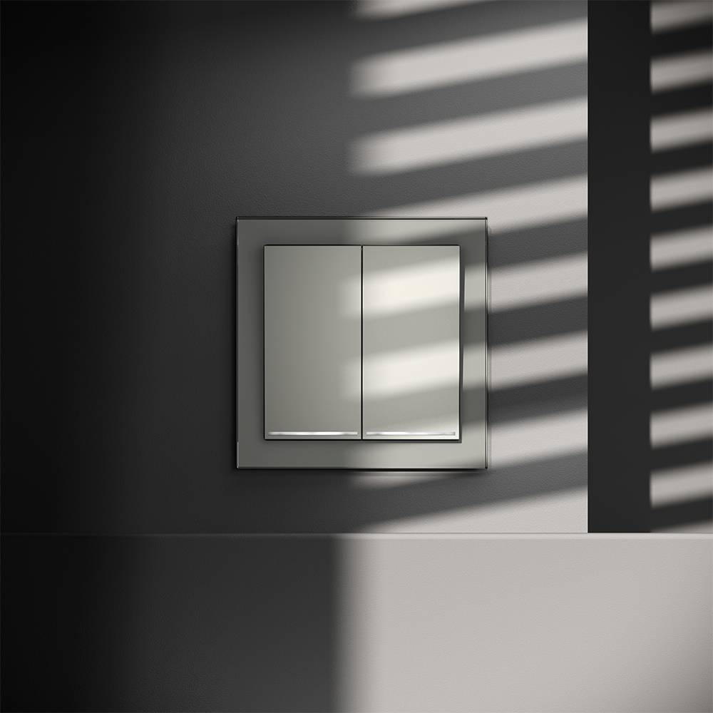 Проходной переключатель встраиваемый VOLTUM S70 двухклавишный с подсветкой 10А, (сталь)