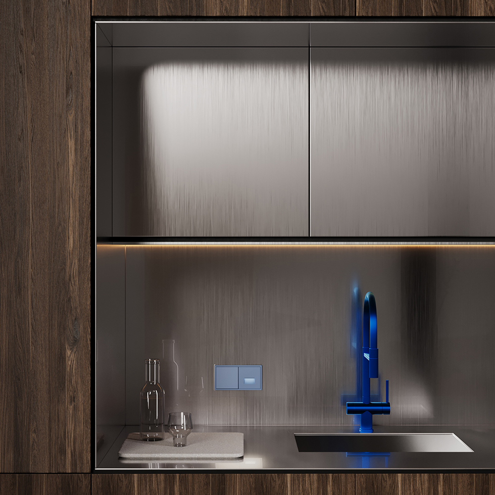 Модульная система серии S70 с раздельной поставкой механизмов, накладок и рамок позволяет монтировать электротехническую основу во время черновых работ, а выбор стилевого решения отложить до завершения дизайн-проекта. При смене интерьера вы легко обновите внешний вид, заменив только лицевые панели без вмешательства в проводку.  Лёгкость и яркость оттенка Деним" прекрасно комбинируется с голубо-бирюзовой палитрой. Он станет удачным выбором для детских пространств и интерьеров кафе, добавляя им живости и современности."