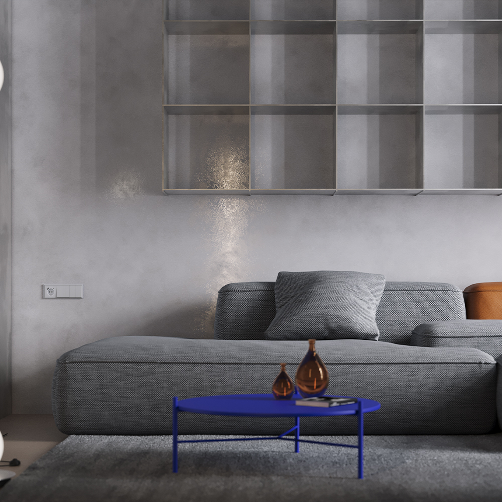 Модульная система серии S70 с раздельной поставкой механизмов, накладок и рамок позволяет монтировать электротехническую основу во время черновых работ, а выбор стилевого решения отложить до завершения дизайн-проекта. При смене интерьера вы легко обновите внешний вид, заменив только лицевые панели без вмешательства в проводку.  Универсальный светло-серый цвет — совершенная ахроматическая основа для современных интерьеров. Он мягко объединяет элементы пространства, создавая сбалансированную и эстетически безупречную среду.