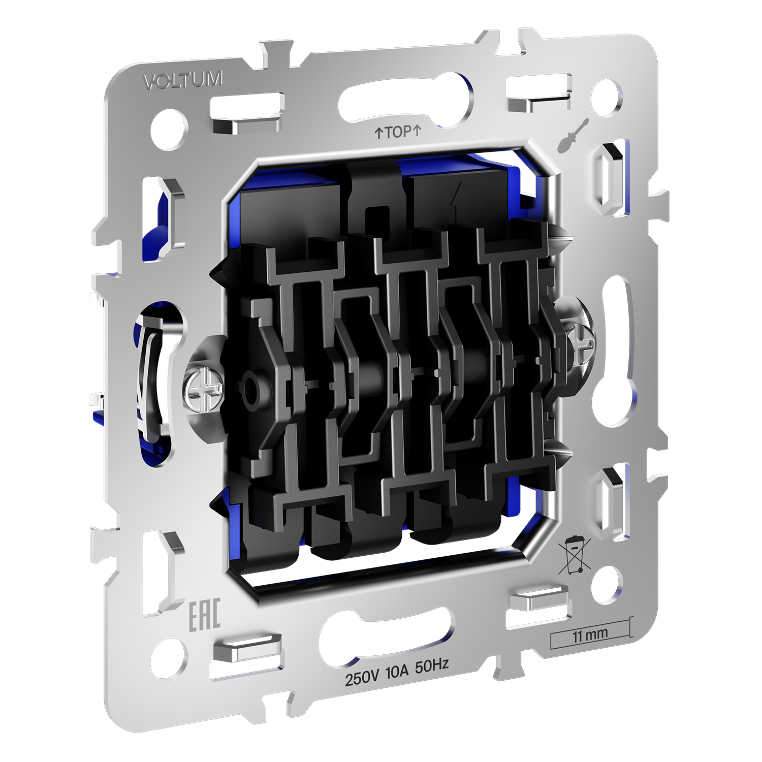 Место установки. Механизмы для классических выключатели устанавливаются в комнатах и помещениях, где требуется управление освещением из одной точки. Для жалюзи, рольставен, штор, ворот и других подобных устройств идеально подходят механизмы выключателей с функцией самовозврата. Конструктивные особенности. Механизм самозажима в выключателях позволяет надежно соединить провод с клеммой, не прибегая к помощи специальных инструментов. Инженеры Voltum разработали конструкцию, которая монтируется всего в несколько движений.