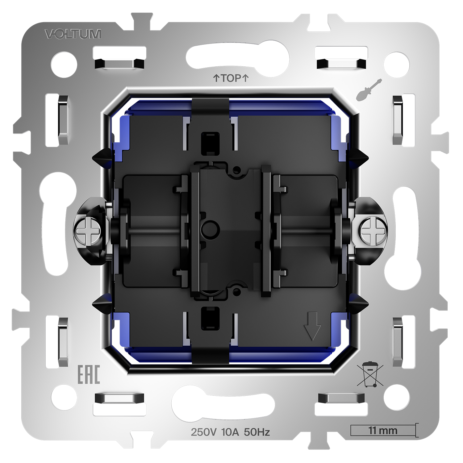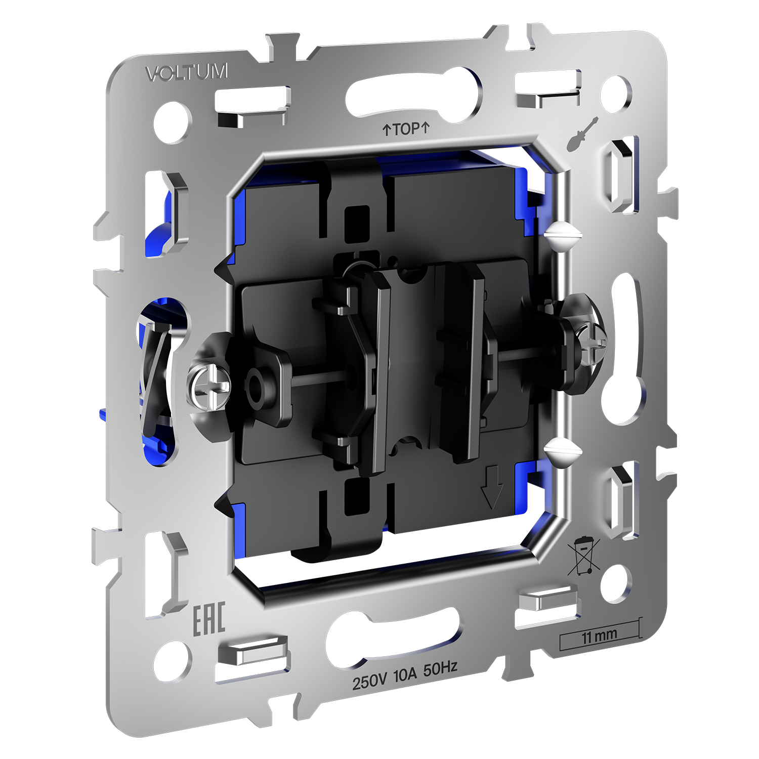 Место установки. Механизмы для классических выключатели устанавливаются в комнатах и помещениях, где требуется управление освещением из одной точки. Для жалюзи, рольставен, штор, ворот и других подобных устройств идеально подходят механизмы выключателей с функцией самовозврата.  Конструктивные особенности. Механизм самозажима в выключателях позволяет надежно соединить провод с клеммой, не прибегая к помощи специальных инструментов. Инженеры Voltum разработали конструкцию, которая монтируется всего в несколько движений.
