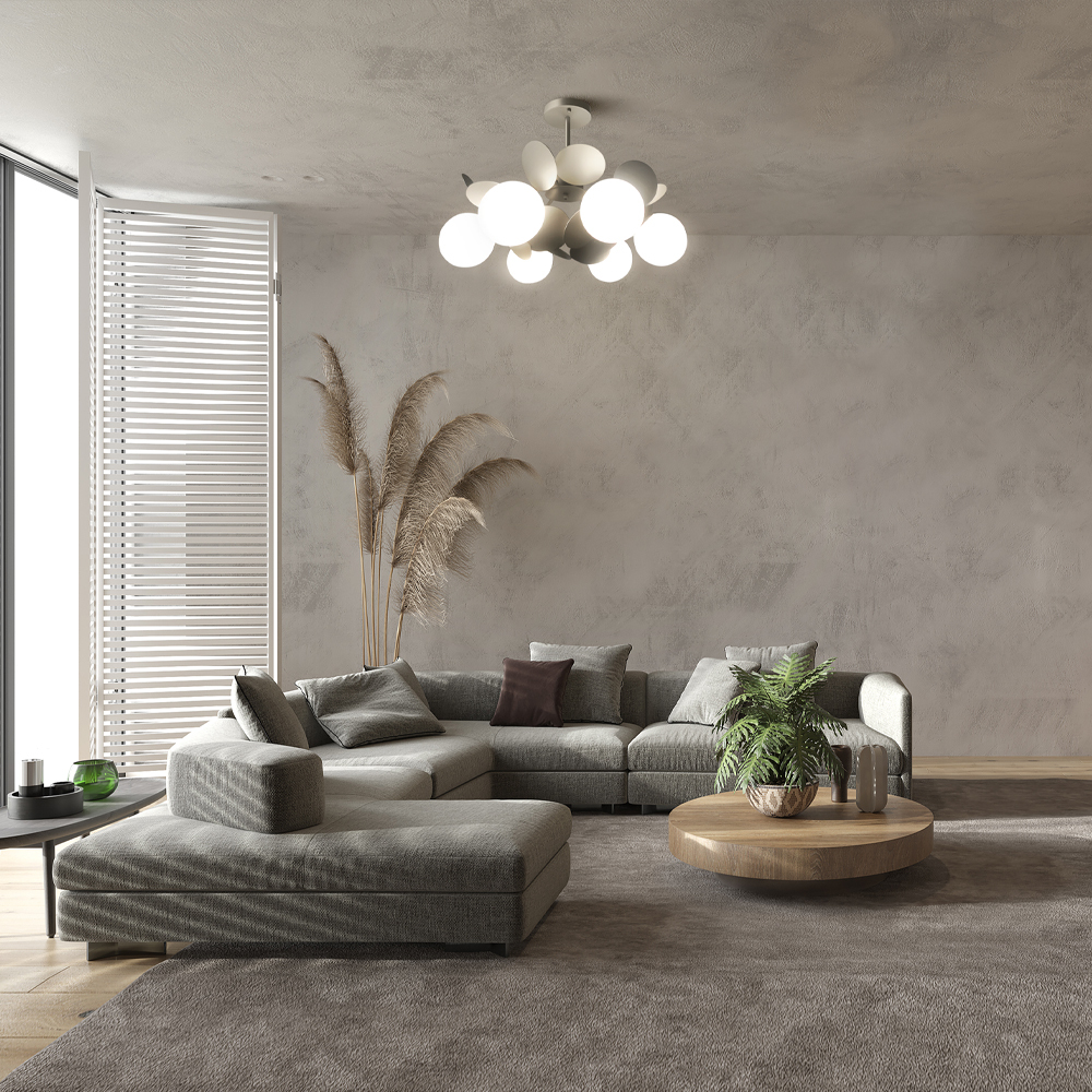Металлическая арматура, оттенки – черный, белый. Плафоны-споты перемеща ются по кольцу, вращаются на 340° по горизонтали и 90° по вертикали. LED- модуль, акриловый рассеиватель.