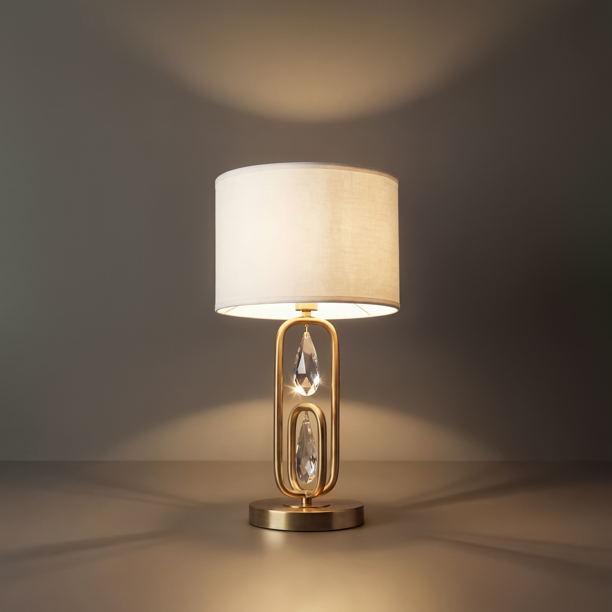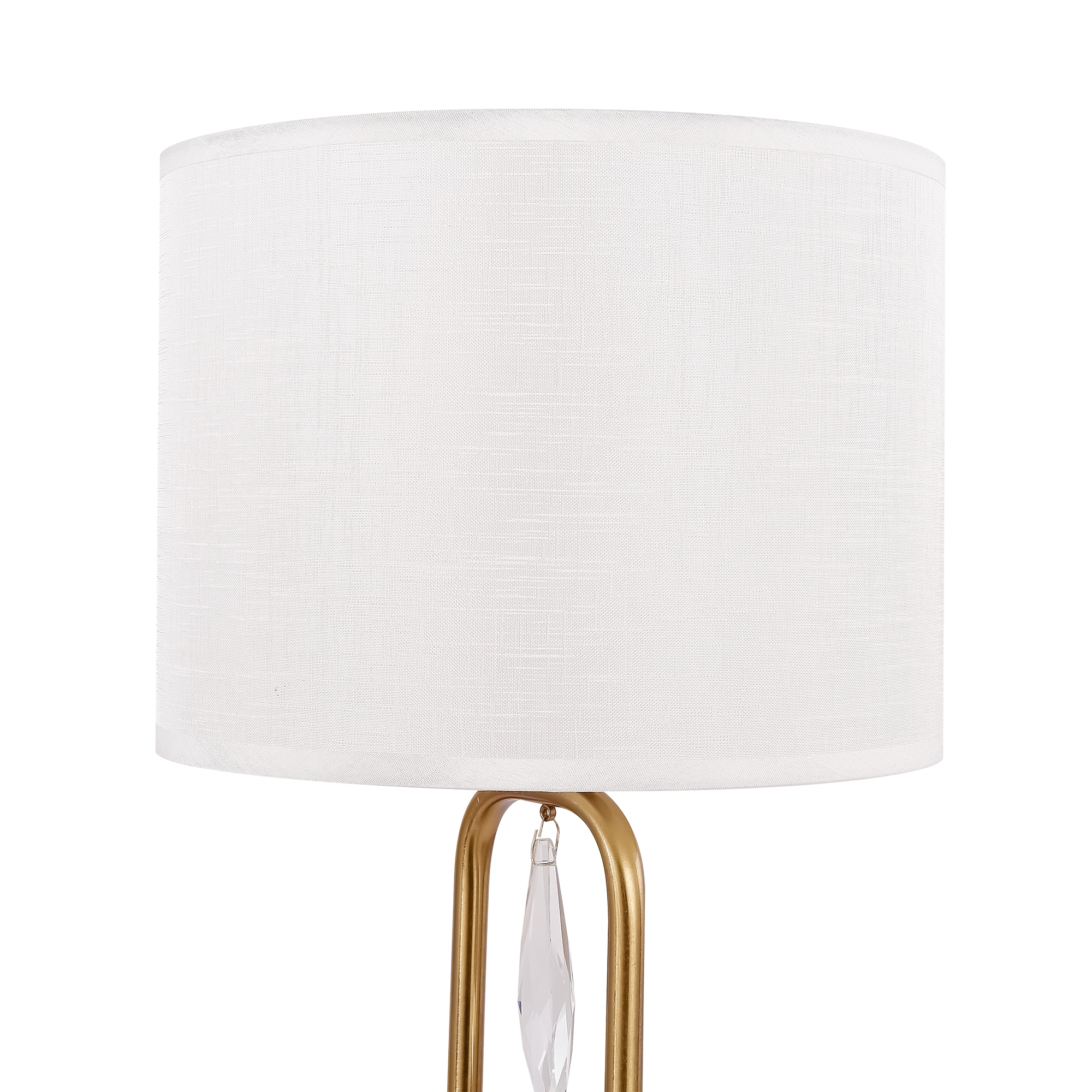 Материал арматуры – нержавеющая сталь, цвет – хром. Материал абажуров – текстиль на ПВХ, цвет – белый. Декор – прозрачное стекло. Акцентные стеклянные кристаллы на рожках со сложной огранкой.