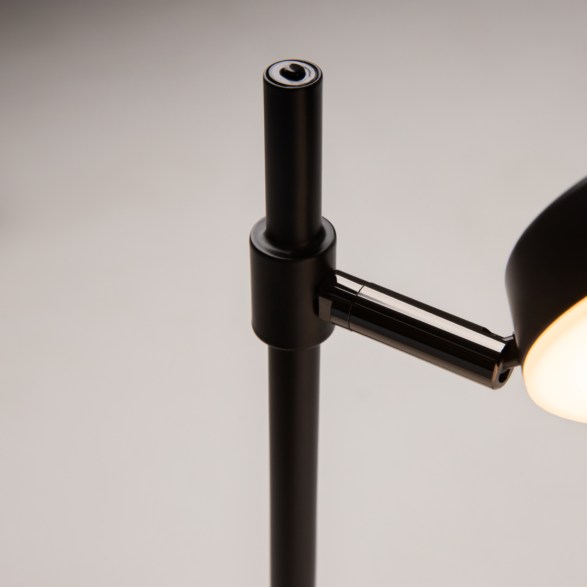 Плафоны и арматура из металла. Цвет рассеивателя — белый, арматура черная или белая. Конструкция предусматривает шарнирный механизм, позволяющий регулировать направление света и высоту светильников. Плафоны вращаются на 90 и 360° (в вертикальной и горизонтальной плоскостях). Угол рассеивания — 120 градусов. Тип света — рассеянный.