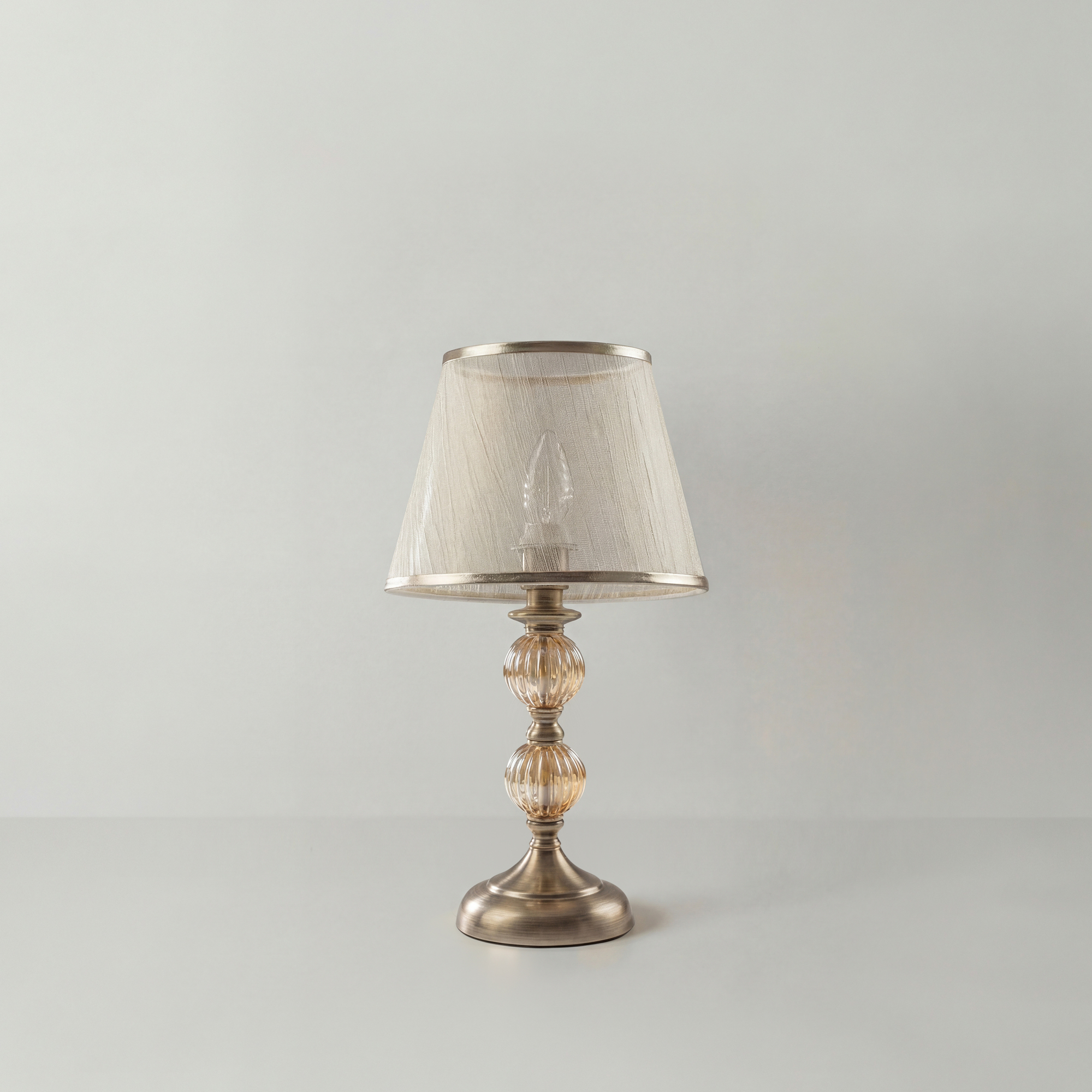 Серия в классическом стиле. Главное украшение светильников Inessa – декоративные элементы арматуры из прозрачного стекла коньячного оттенка. Абажуры выполнены из органзы и обрамлены тесьмой в цвет арматуры, сделанной из металла. Широкая линейка позволит осветить все зоны помещения в едином стиле.