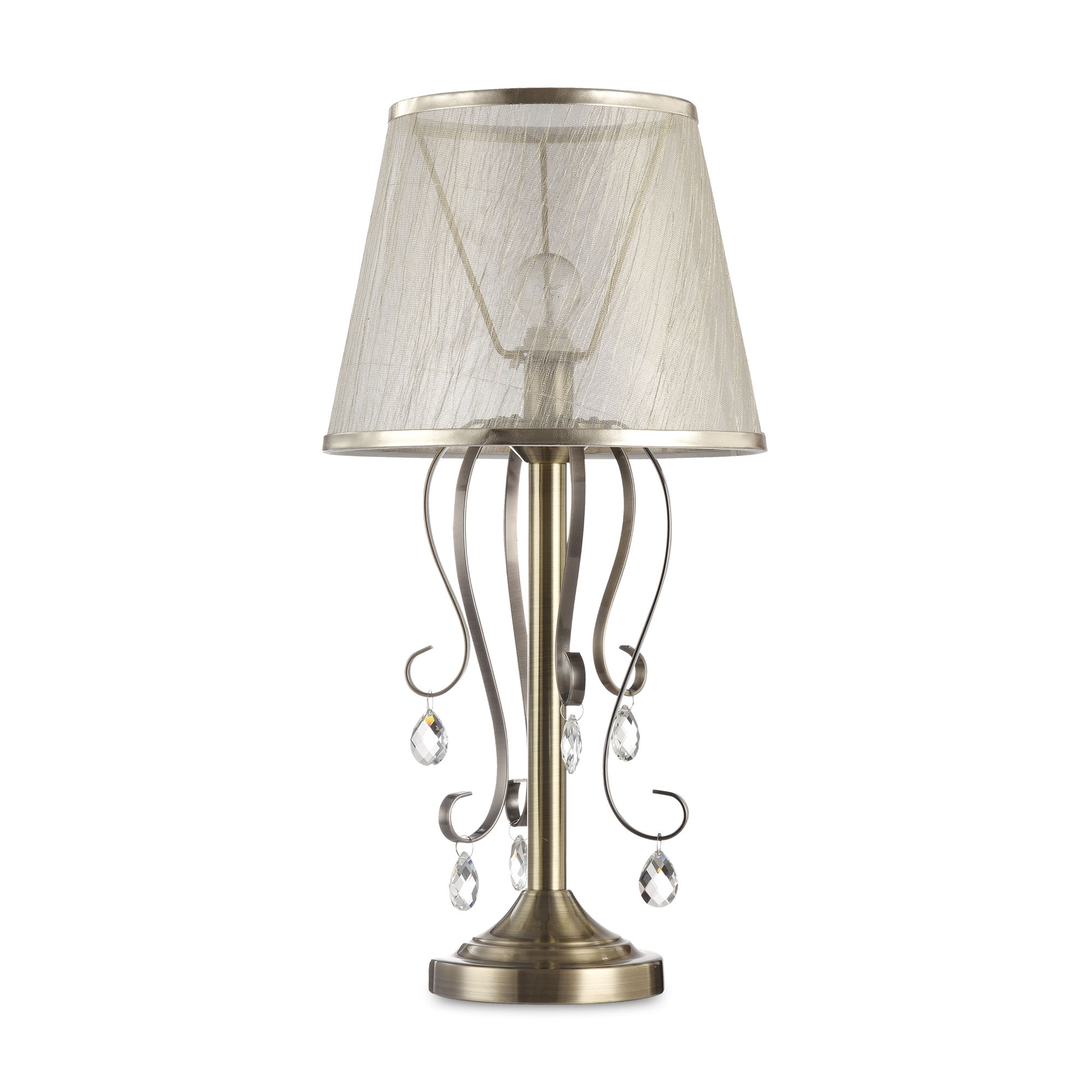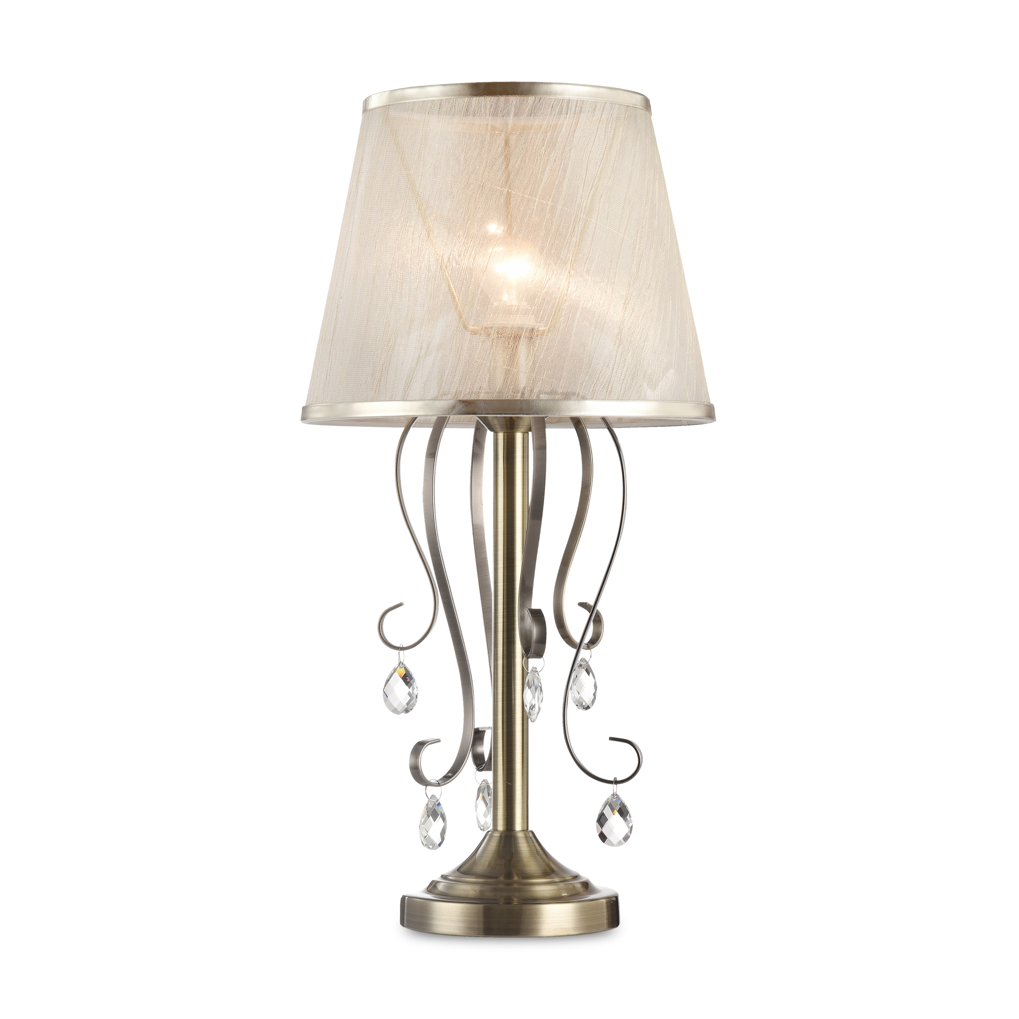 Абажуры и арматура светильников выполнены в разных цветах, с несколькими видами арматуры. Основание люстры украшено стеклянным декоративным элементом, а завитки рожков украшают подвески.