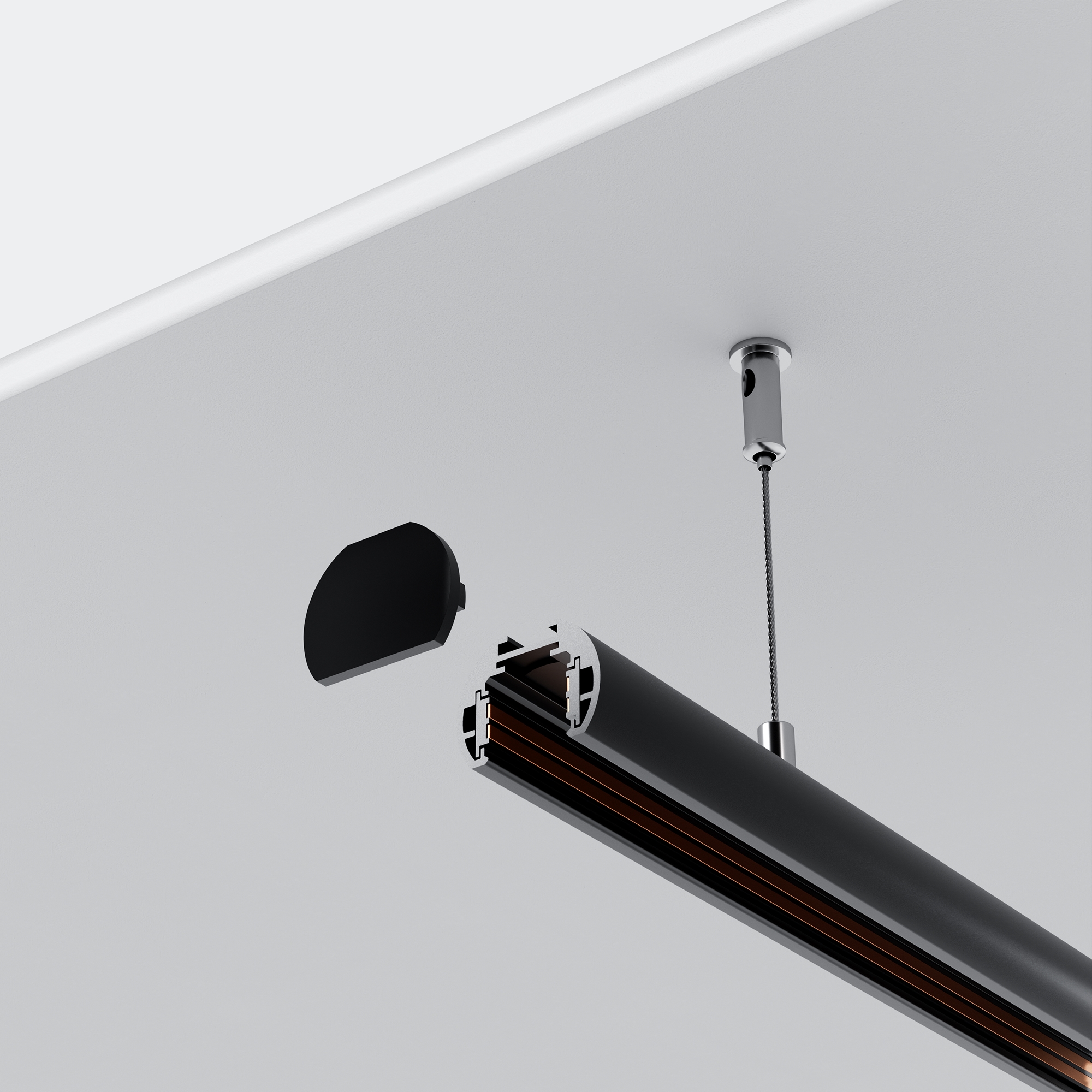 Комплектующие для низковольтной магнитной трековой системы Exility в черном и белом цветах. Разнообразие аксессуаров позволяет собрать свою уникальную конструкцию для накладного монтажа, подвесного, встраиваемого под гипсокартон и встраиваемого в натяжные потолки.