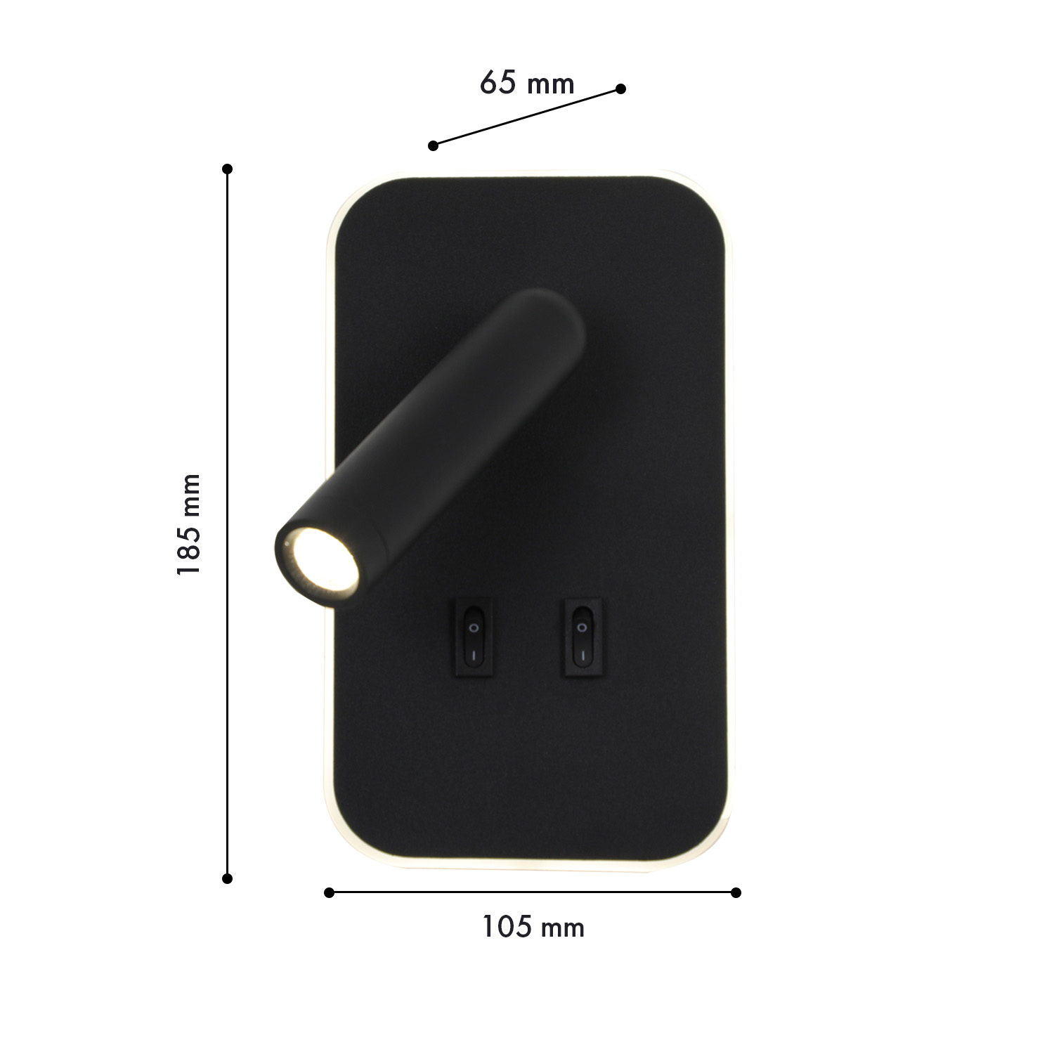 4497-2W, настенный светильник, D65xW105xH185, LEDx3W + LEDx5W, 480LM, 4000K, included, switch