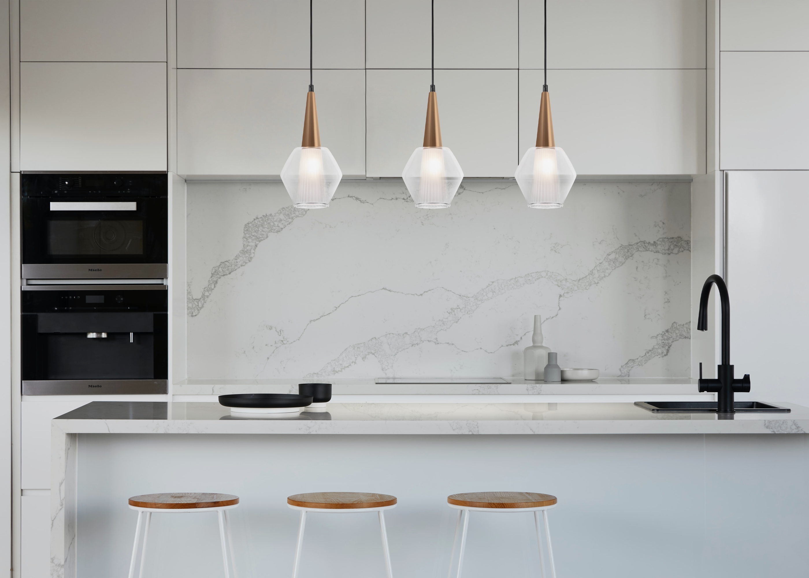 Вдохновляясь геометрией, дизайнеры создают лаконичные модели в стиле минимализм. Металлическая арматура светильников сочетает контрастный черный и золотой оттенок, напоминая о ретро-стилистике. Оригинальные двойные плафоны выполнены из стекла, внутренняя часть представлена в двух вариантах: с фактурной рельефной поверхностью и матовой гладкой. Сложная геометрическая фигура обрамляет конус, подчеркивая трендовый дизайн. Серия Copita состоит из двух подвесов, предназначенных для комфортного зонального освещения. Их можно использовать в интерьерах, выполненных в стиле лофт, mid-century modern, сканди, минимализм.