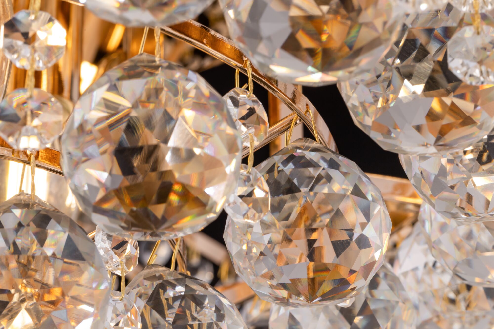 Арматура – металл, цвет – золото. Декоративные подвески закреплены на метал лическом каркасе. Кристаллы различных форм и огранок.