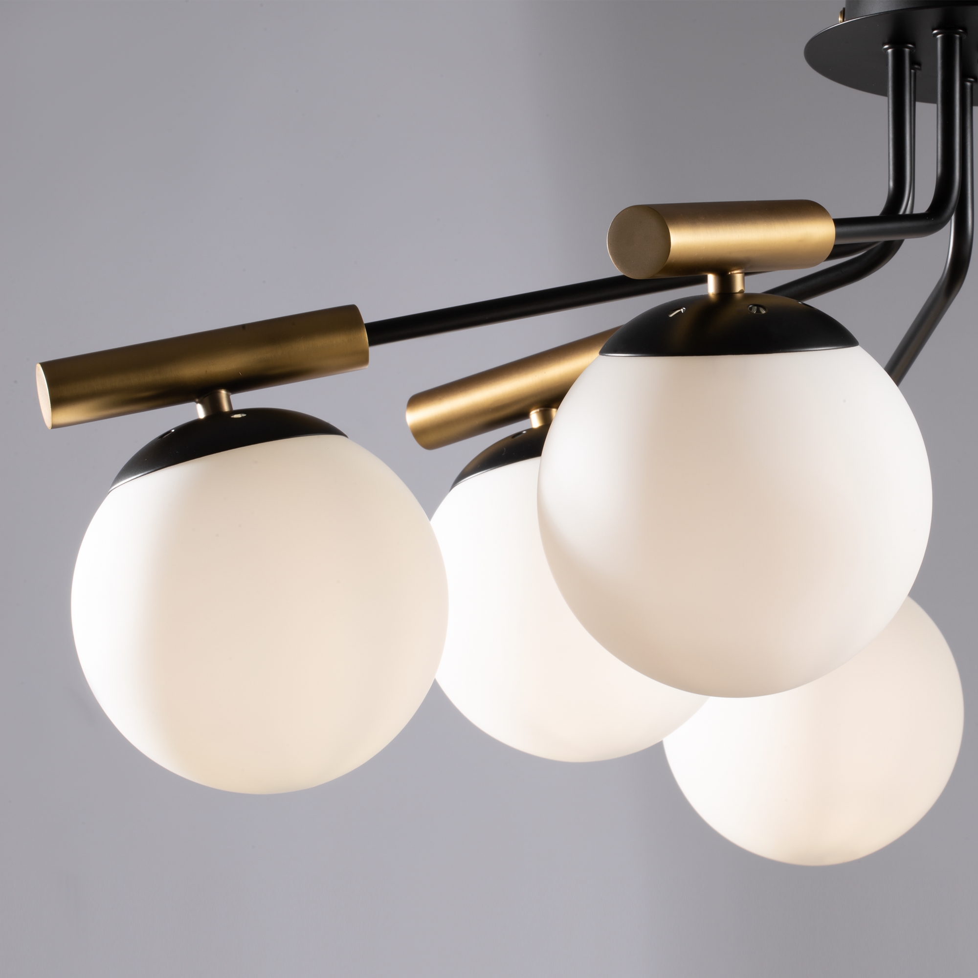 Светильники Paolina - прекрасное решение для помещений с невысокими потолками. Светильники выполнены в современном стиле и подходят как для частных помещений, так и для офисных интерьеров. Черная металлическая арматура контрастирует с белым цветом плафонов, сделанных из матового стекла.