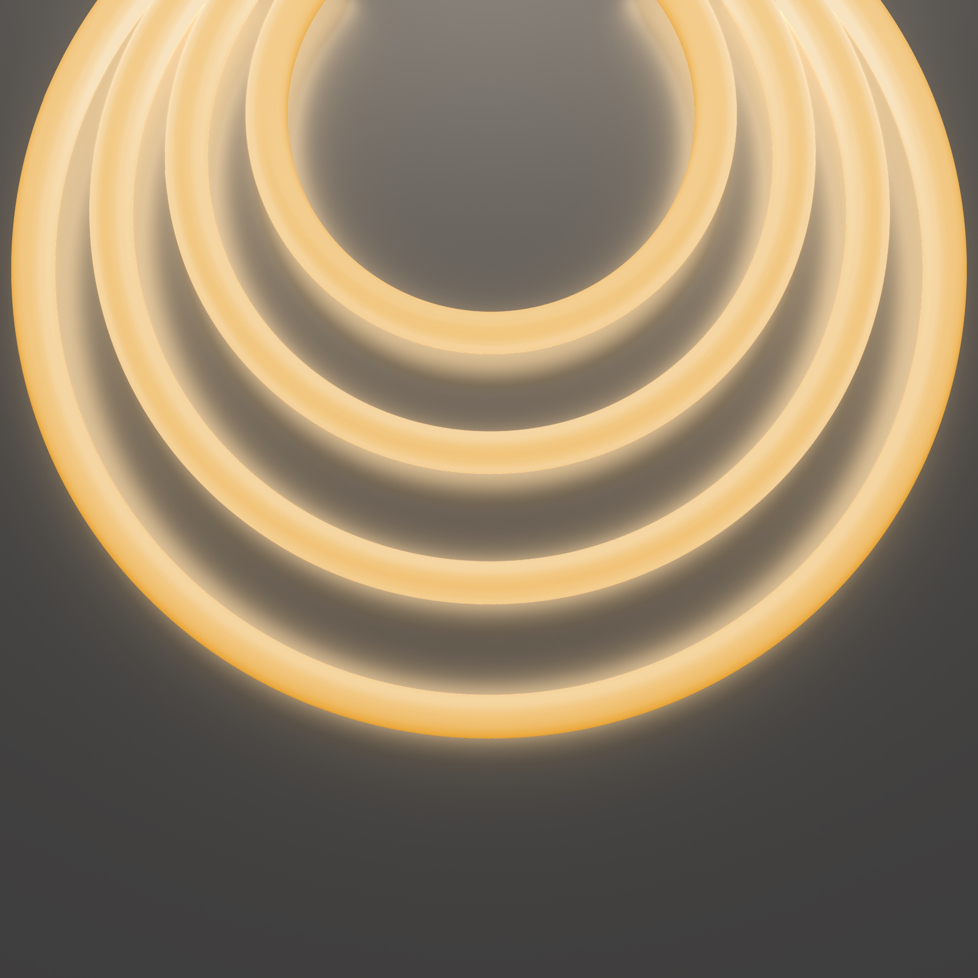Гибкий неон круглого сечения с белым и цветным свечением. С его помощью можно создавать уникальные световые композиции для основного, декоративного освещения, рекламных вывесок, а также архитектурной подсветки. Рассеивание света на 360° гарантирует равномерное освещение и идеально подходит для создания эффектных световых инсталляций. Серия включает в себя широкий ассортимент креплений накладного и подвесного понтажа для воплощения уникальных проектов любой сложности.