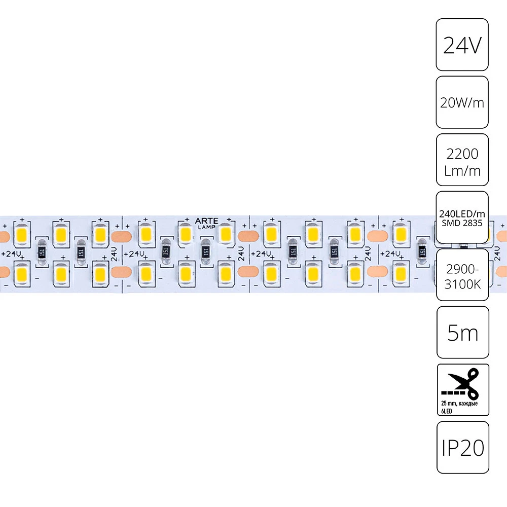 Светодиодная лента 24V 20W/m 3000К 5м Arte Lamp TAPE A2424015-01-3K