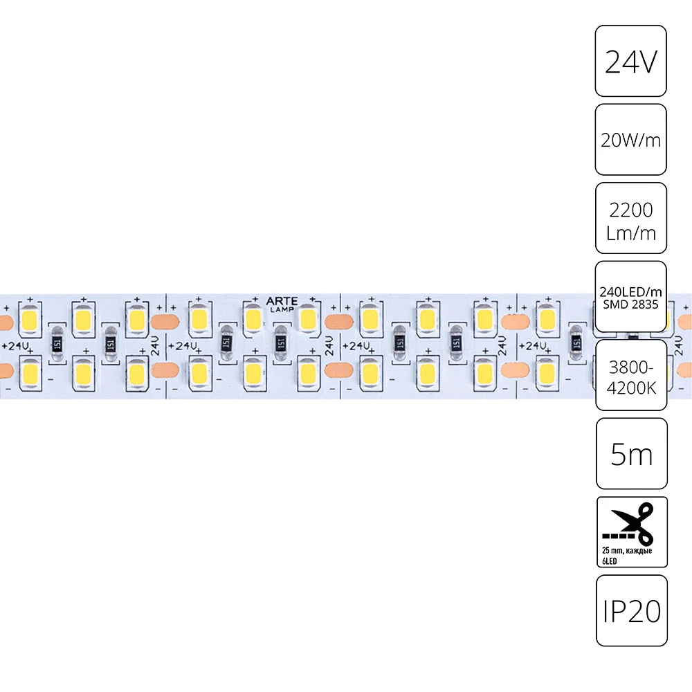 Светодиодная лента 24V 20W/m 4000К 5м Arte Lamp TAPE A2424015-02-4K