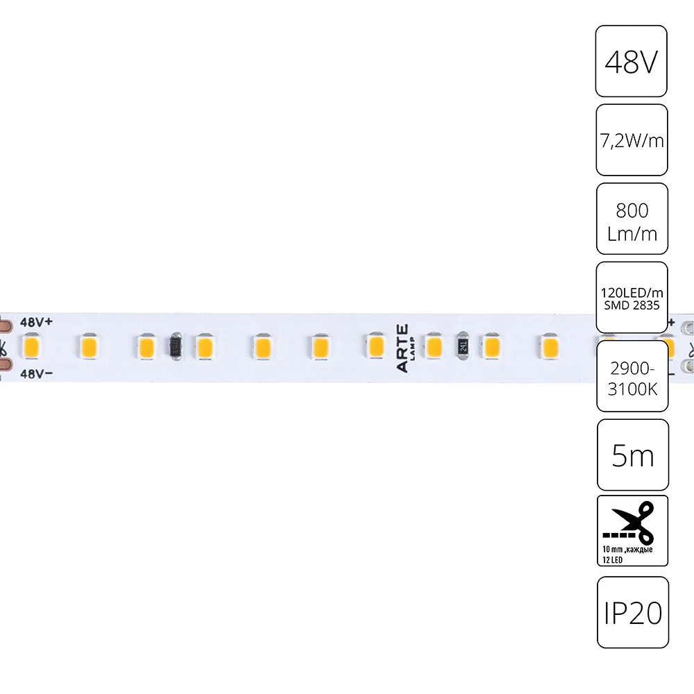 Светодиодная лента 48V 7,2W/m 3000К 5м Arte Lamp TAPE A4812010-01-3K