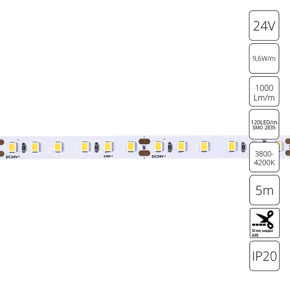 Светодиодная лента 24V 9,6W/m 4000К 5м Arte Lamp TAPE A2412008-02-4K