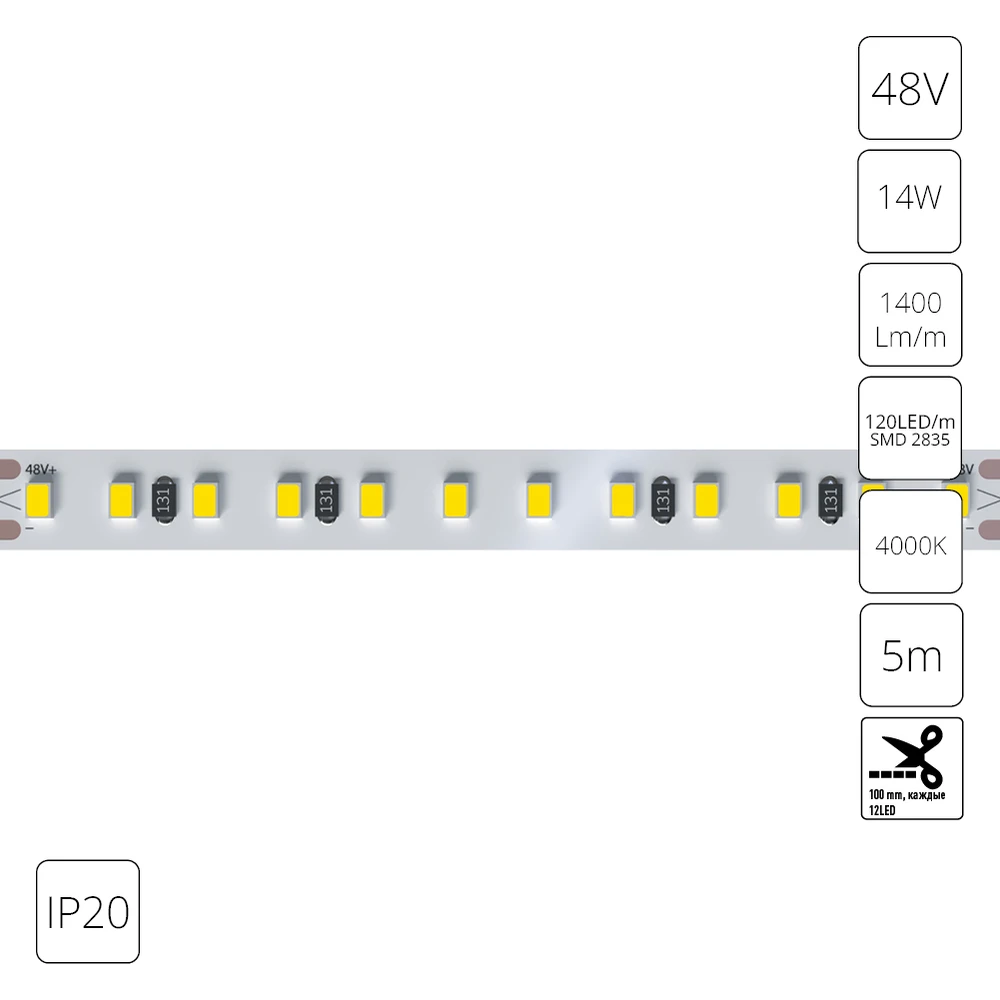 Светодиодная лента 48V 14,4W/m 4000К 5м IP20 Arte Lamp TAPE A4812010-06-4K
