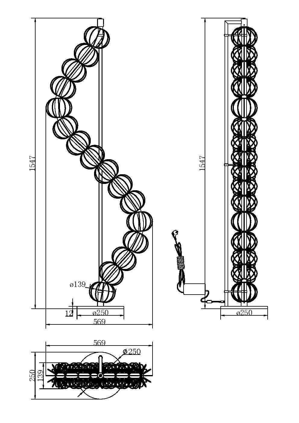 Арматура - металл, цвет - золото. Декоративные проволочные плафоны-сферы - ручная работа. Горизонтальные подвесы в двух вариатах монтажа - накладном и скрытом. Свтовой элемент - силиконоваая трубка с LED-источником. Цветовая температура 3000К.