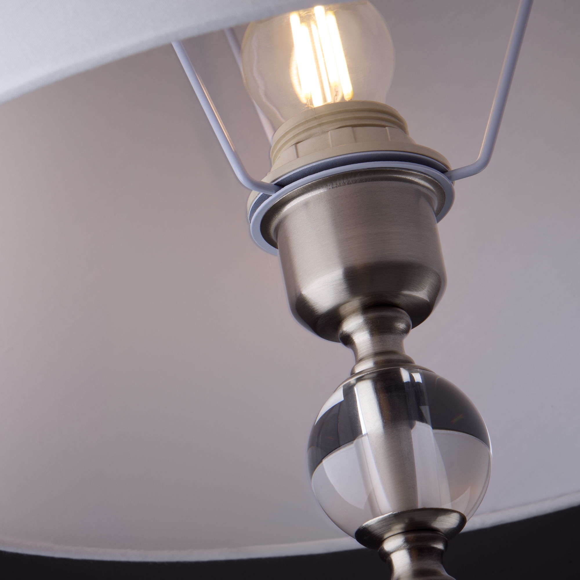 Арматура - металл, плафоны - стекло. Цветовые комбинации арматуры и плафона: черный + прозрачный, черный + янтарный, латунь + прозрачный. Элементы декора - выдувные «бусины» из стекла. Высота проводов регулируется. Источник света - лампа с цоколем GU10.