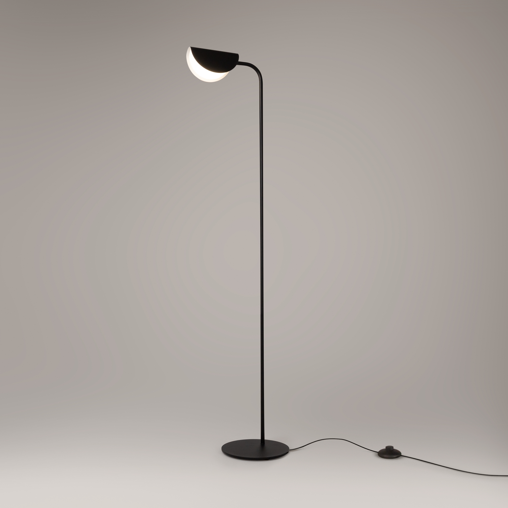Арматура и плафоны из металла, цвет – черный. Оригинальная форма плафона с плавным контуром. Источники света скрыты под акриловым рассеивателем.