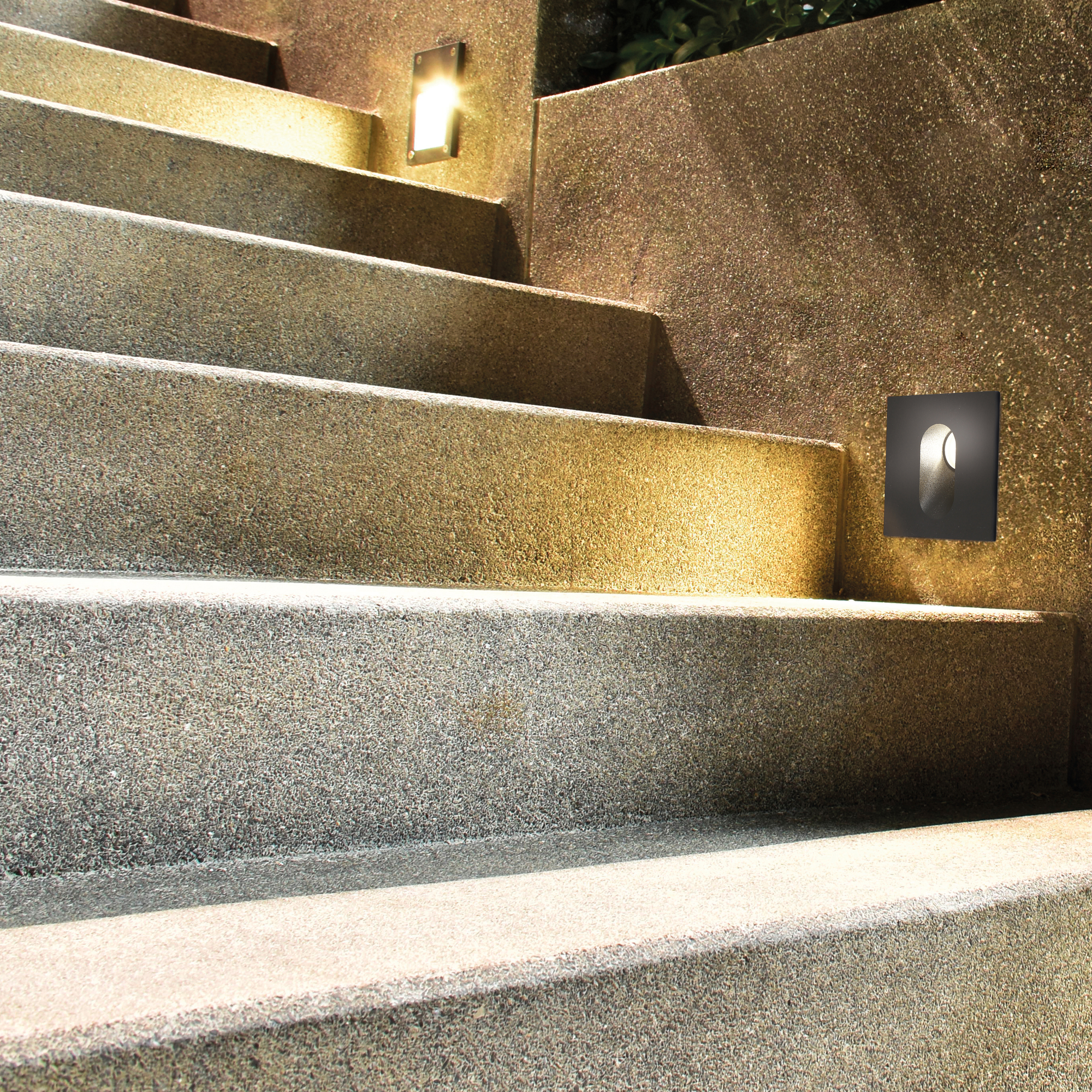 Встраиваемые светодиодные светильники для подсветки лестничных маршей и навигации. Алюминиевый корпус не подвержен коррозии, а силиконовые прокладки и защитное стекло обеспечивают защиту от пыли и влаги на уровне IP44. Светильники можно использовать на улице и во влажных помещениях. Для быстрого и легкого монтажа в комплект входит установочный бокс из прочного пластика.