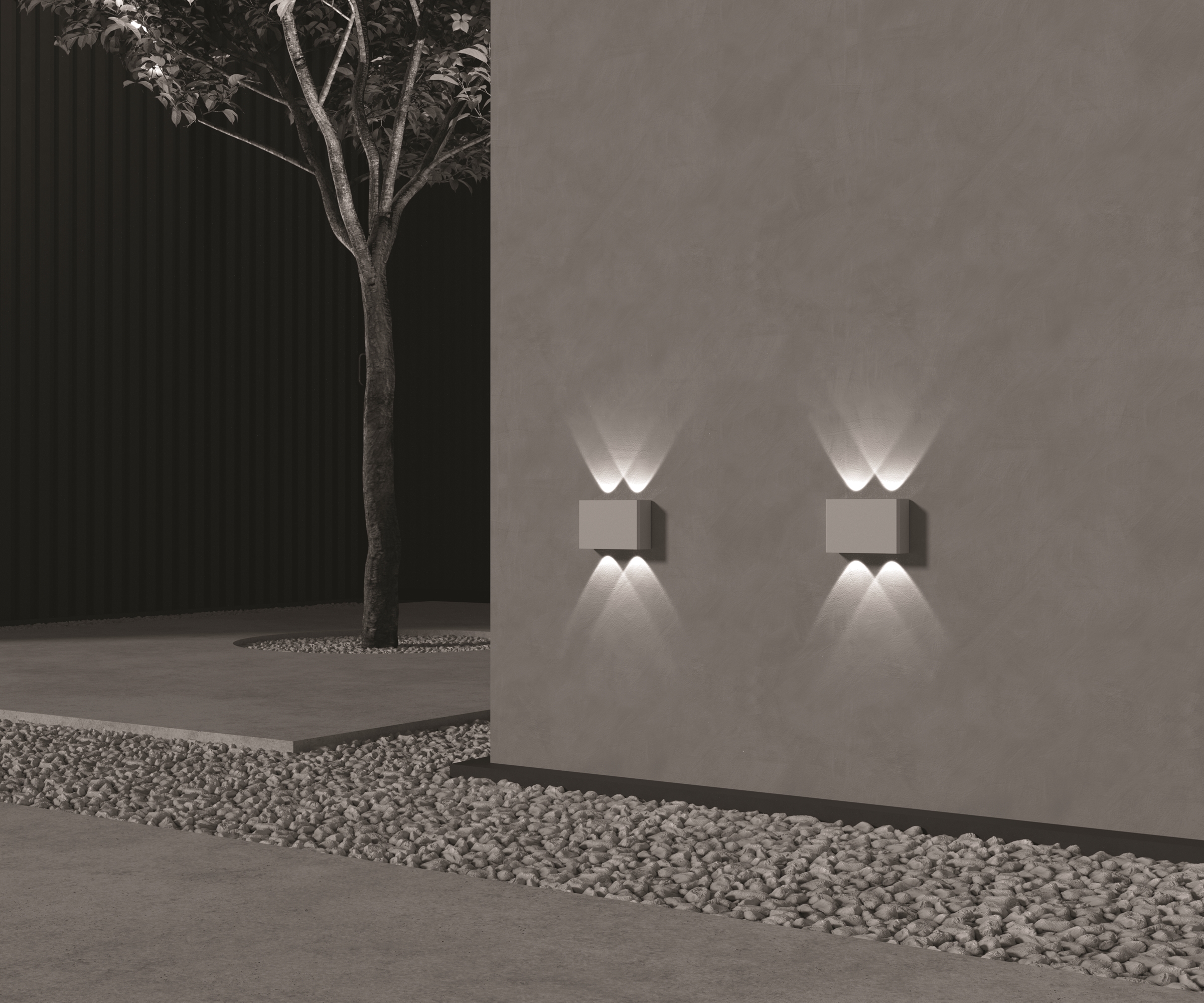 Материал корпуса - алюминий, цвета - графит, белый. Два луча света из верхней и нижней поверхности светильника. Идеальны для составления эффектных световых рисунков. LED-истоничк света - IP54.