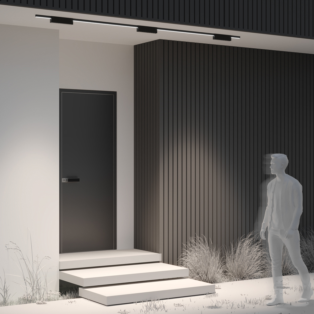 Материал профиля — алюминий.  Цвет черный. Силиконовая световая линия с токоведущими жилами - позволяет подключить дополнительные светильники в любой точке трека.  Две базовые серии LED-светильников. Серия Points - базовые линейные светильники   в 2-х размерах. Серия Focus - споты и подвесы.  Все светильники оснащены LED-источником света с теплой цветовой температурой 3000К.  Высокая степень защиты корпуса от пыли и влаги IP65. Монтаж в любом месте на улице или в помещениях с повышенным влажностью. Линейный свет в сочетании с эффектами акцентного освещения. Гарантийный срок — 5 лет.