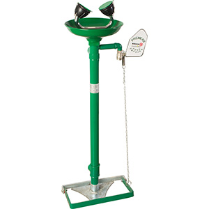Аварийная раковина для промывки глаз предназначена для заводов, фабрик, лабораторий, где есть риск нанесения здоровья рабочему персоналу от огня, кислот, и прочих химических или радиоактивных реагентов. Приводится в действие с помощью бокового рычага или напольной педали