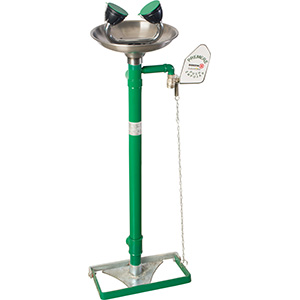Аварийная раковина для промывки глаз предназначена для заводов, фабрик, лабораторий, где есть риск нанесения здоровья рабочему персоналу от огня, кислот, и прочих химических или радиоактивных реагентов. Приводится в действие с помощью бокового рычага или напольной педали