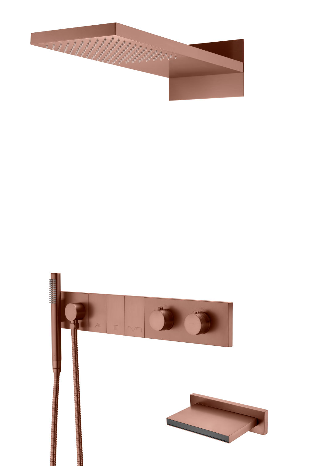 Встроенная душевая система с изливом ZODIAC с термостатом, трехпозиционная Brushed Bronze