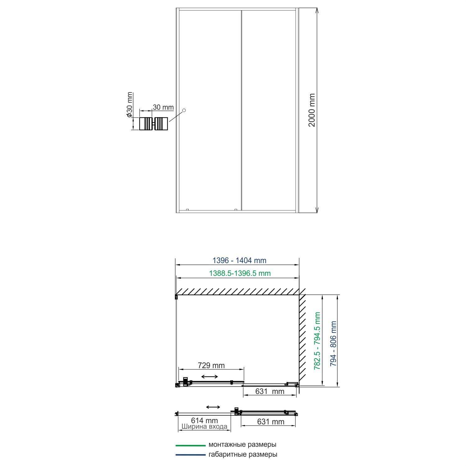 Габаритный размер 1396-1404 х 794х806 х 2000, монтажный размер 1388,5-1396,5 х 782,5 х 794,5 х 2000, Ширина входа 614 мм