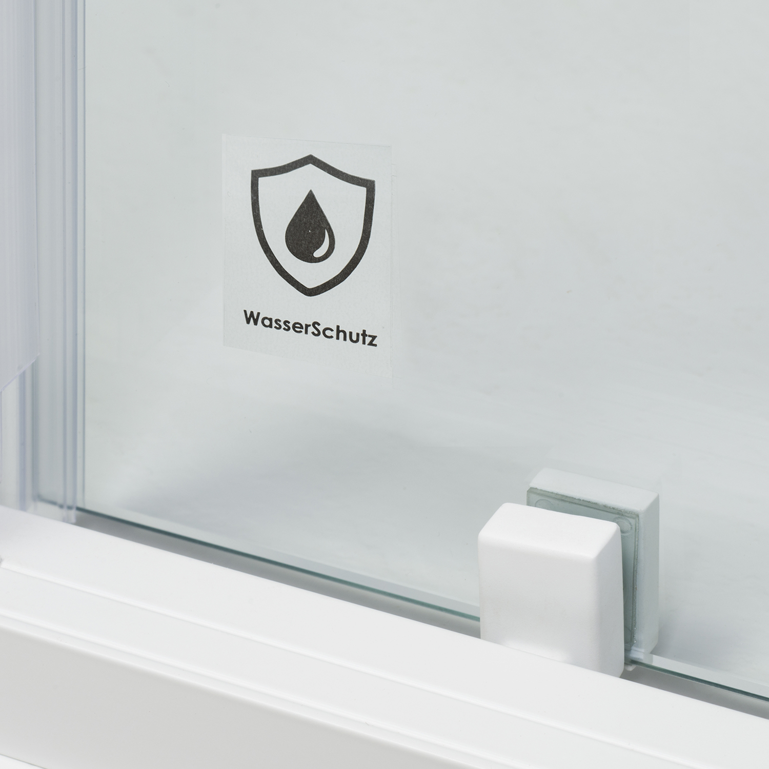 Покрытие WasserSchutz защищает поверхность стекла от разводов воды и известковых отложений. Капли воды на поверхности невидимого защитного слоя не задерживаются, а стекают, не оставляя подтеков. Это гарантирует легкий уход за изделием. Сторона стекла, где нанесено покрытие WasserSchutz, обозначается специальной наклейкой. Именно этой стороной внутрь необходимо устанавливать стекло при монтаже.