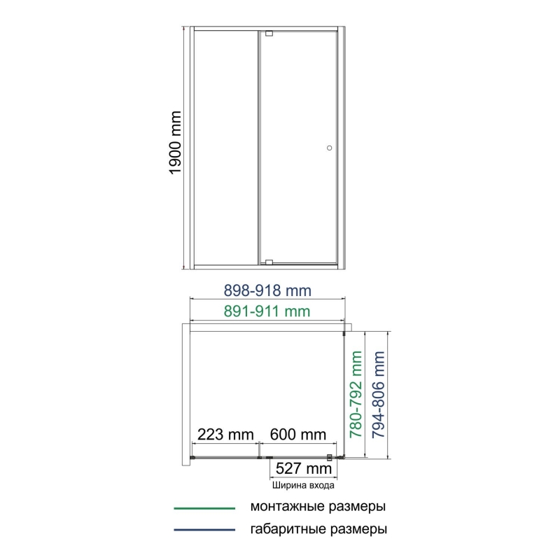 ширина входа 527мм