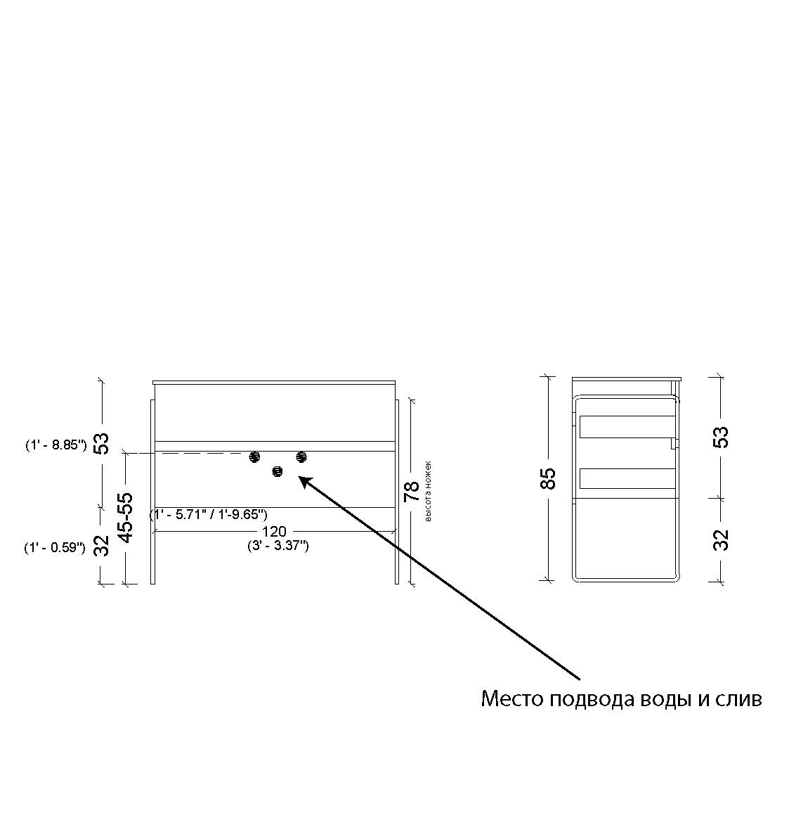 Тумба без раковины Vallessi 120*46cm АНТРАЦИТ мат. 2 полки,