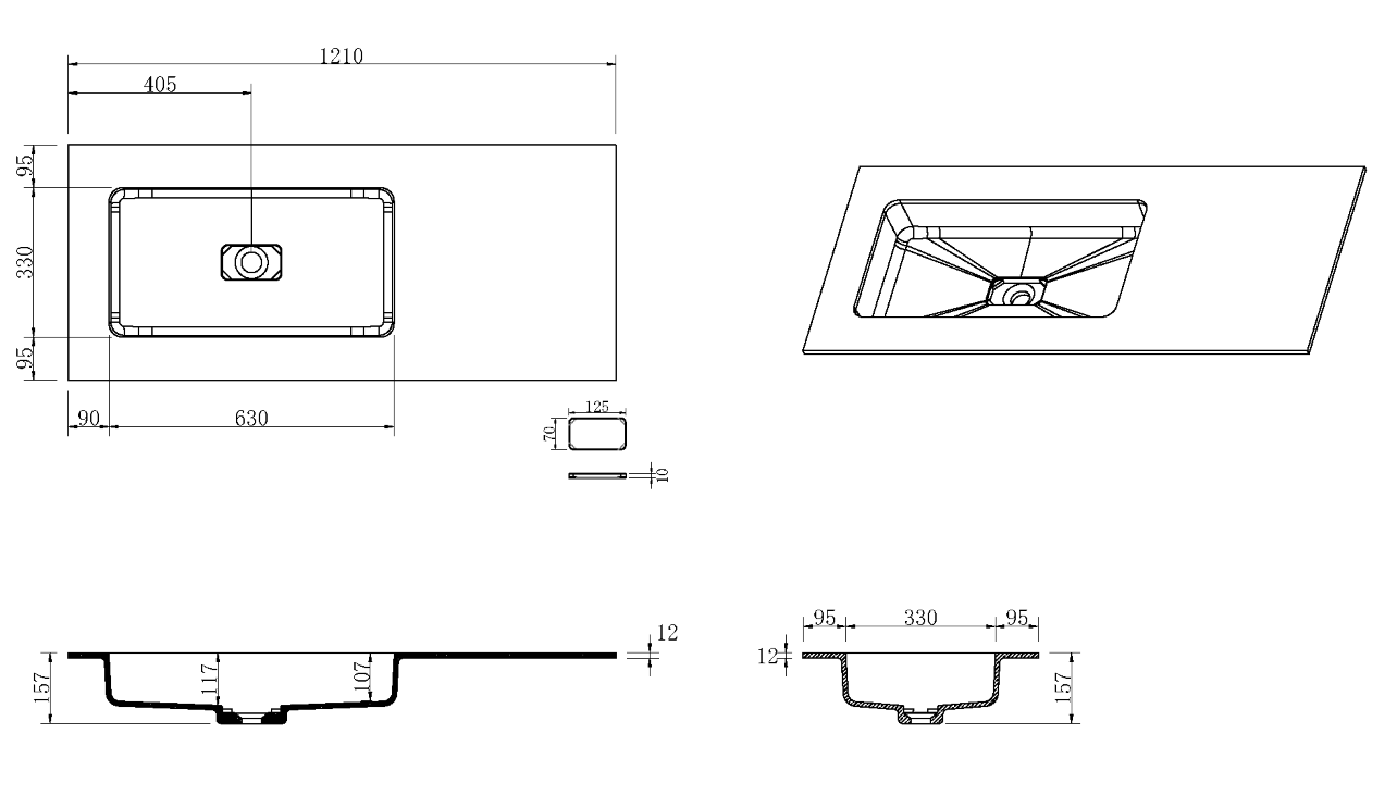 QUATRO 120 раковина-моноблок ANTHRACITE (раковина слева)