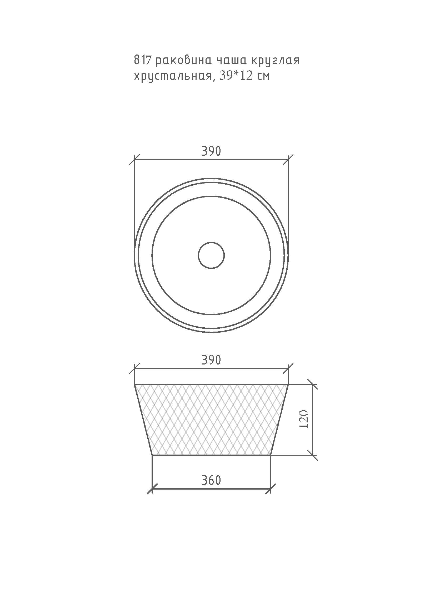 Раковина чаша круглая хрустальная черная 39*12см