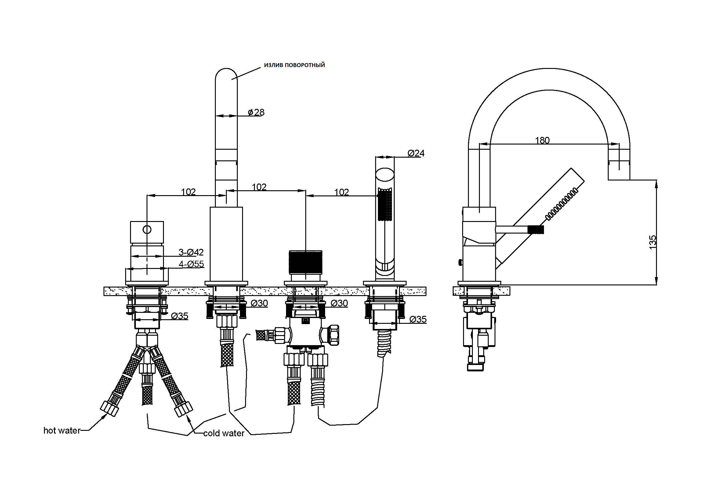 Смеситель врезной на борт ванны UNO Nikel Brush