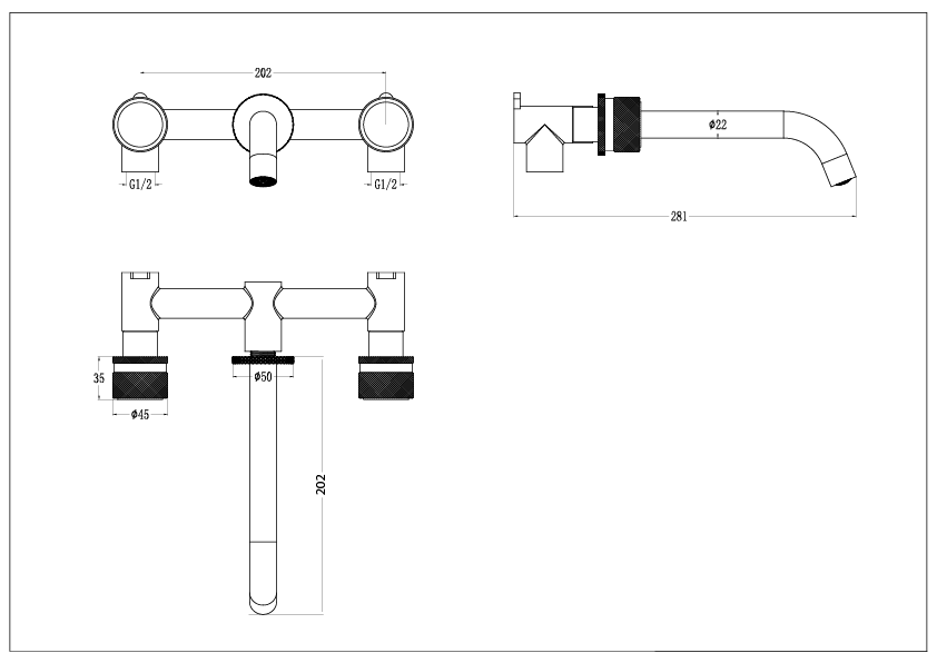 Смеситель из стены STICK SPIRALE на 3 отв. Matt Gold