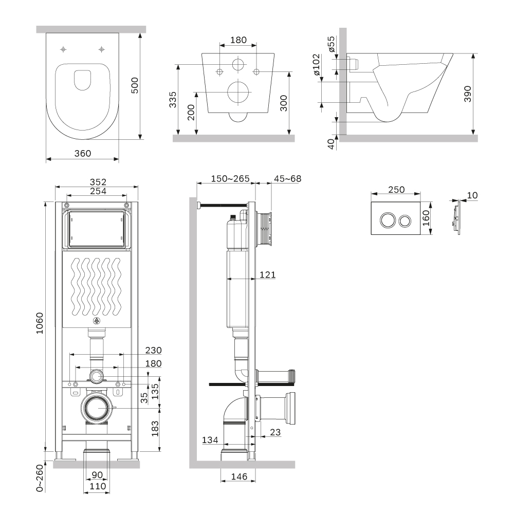 Максимально полный комплект поставки включающий все необходимые крепления патрубки звукоизолирующую прокладку. Экономия пространства благодаря узкой раме – 352 мм шириной. Подходит даже для самых малогабаритных ванных комнат. Заливной клапан с низким уровнем шума - Класс II согласно европейского стандарта EN 14124.