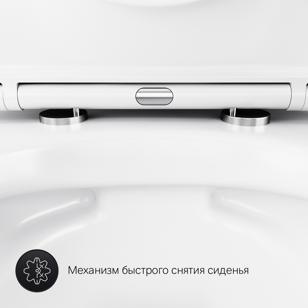 В комплекте быстросъемное сиденье из дюропласта с функцией микролифт. Актуальный дизайн сиденья slim wrap-over с однокнопочным механизмом быстрого снятия. Материал сиденья дюропласт устойчивый к появлению царапин в сочетании с креплениями из нержавеющей стали гарантируют долговечность сиденья. ""