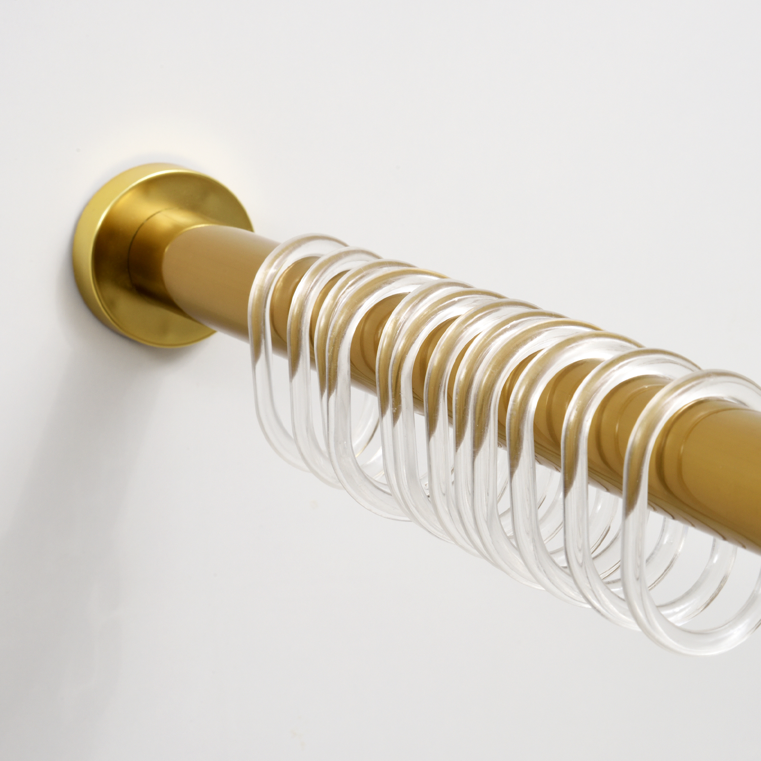 Назаначение: Карниз для ванной комнаты. Материал: Алюминий. Описание: цвет золотой , телескопическое крепление, силиконовый уплотнитель крепления, размер 110-200 см, пластиковые кольца в комплекте, 12 шт.