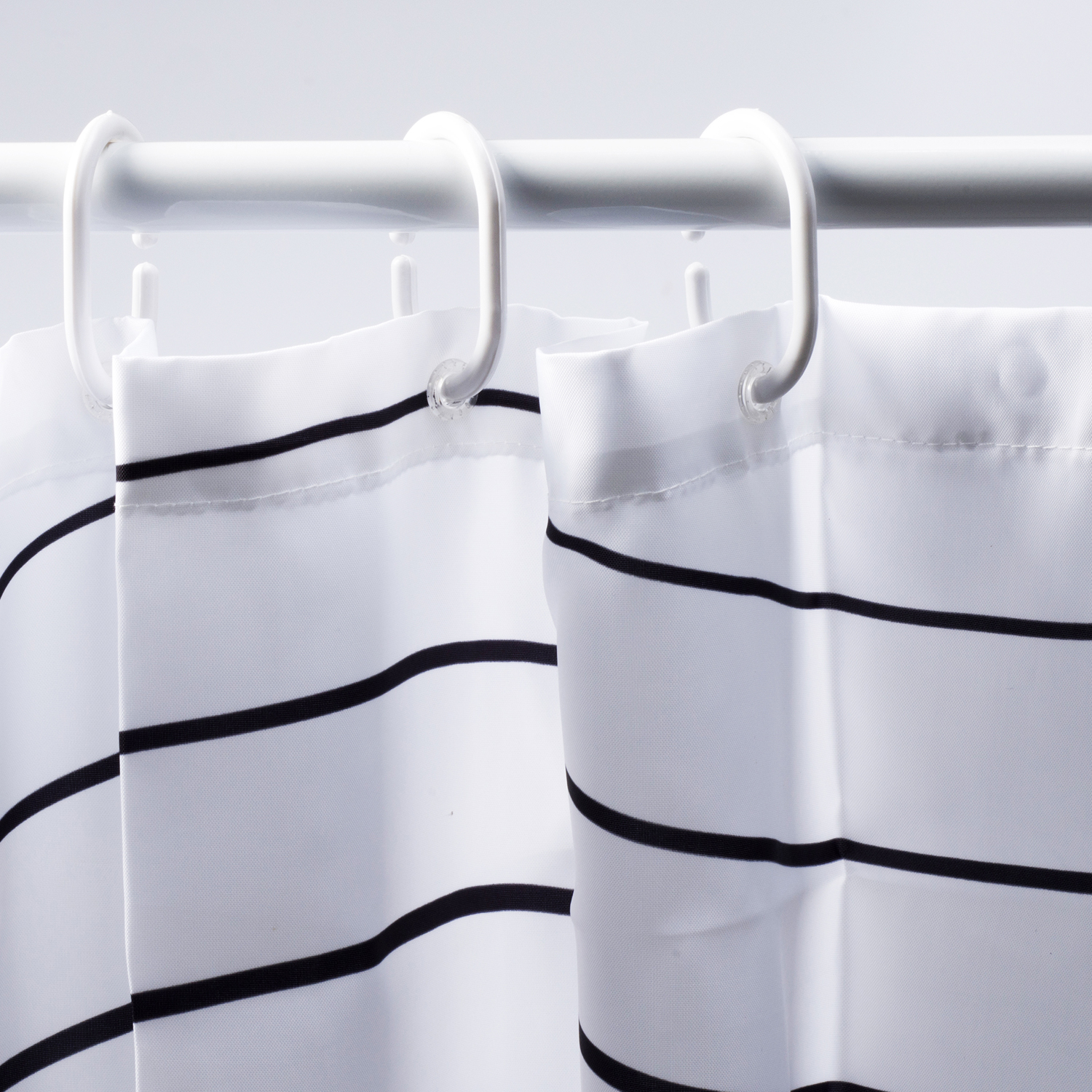 Описание: Размер 1800 х 2000 мм, водоотталкивающая пропитка. Низ шторки оснащен утяжелителем, в комплект входят ластиковые кольца белого цвета, 12 шт. Плотность шторки 90 г/м²