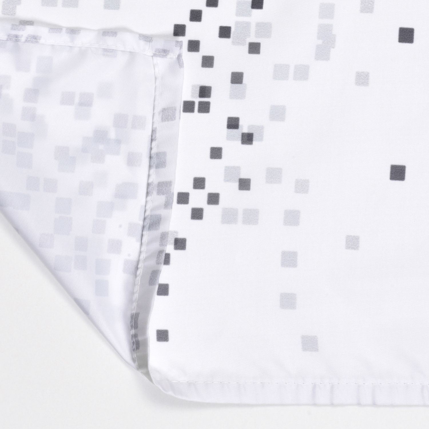 Описание: Размер 1800 х 2000 мм, водоотталкивающая пропитка. Низ шторки оснащен утяжелителем, в комплект входят ластиковые кольца белого цвета, 12 шт. Плотность шторки 90 г/м²